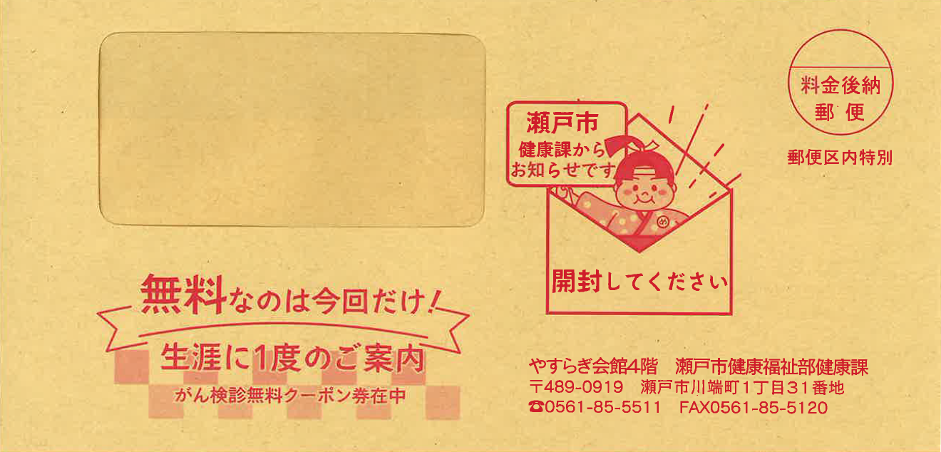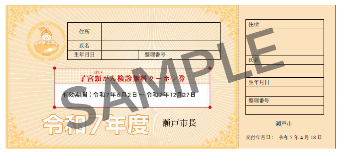 対象者には5月末頃に受診券と別送で個別に無料クーポン券をお届けします。