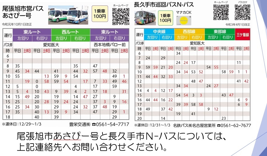 「愛知医大」と「バロー瀬戸西店」での乗り換えでは下記時刻をご参考にご利用ください。