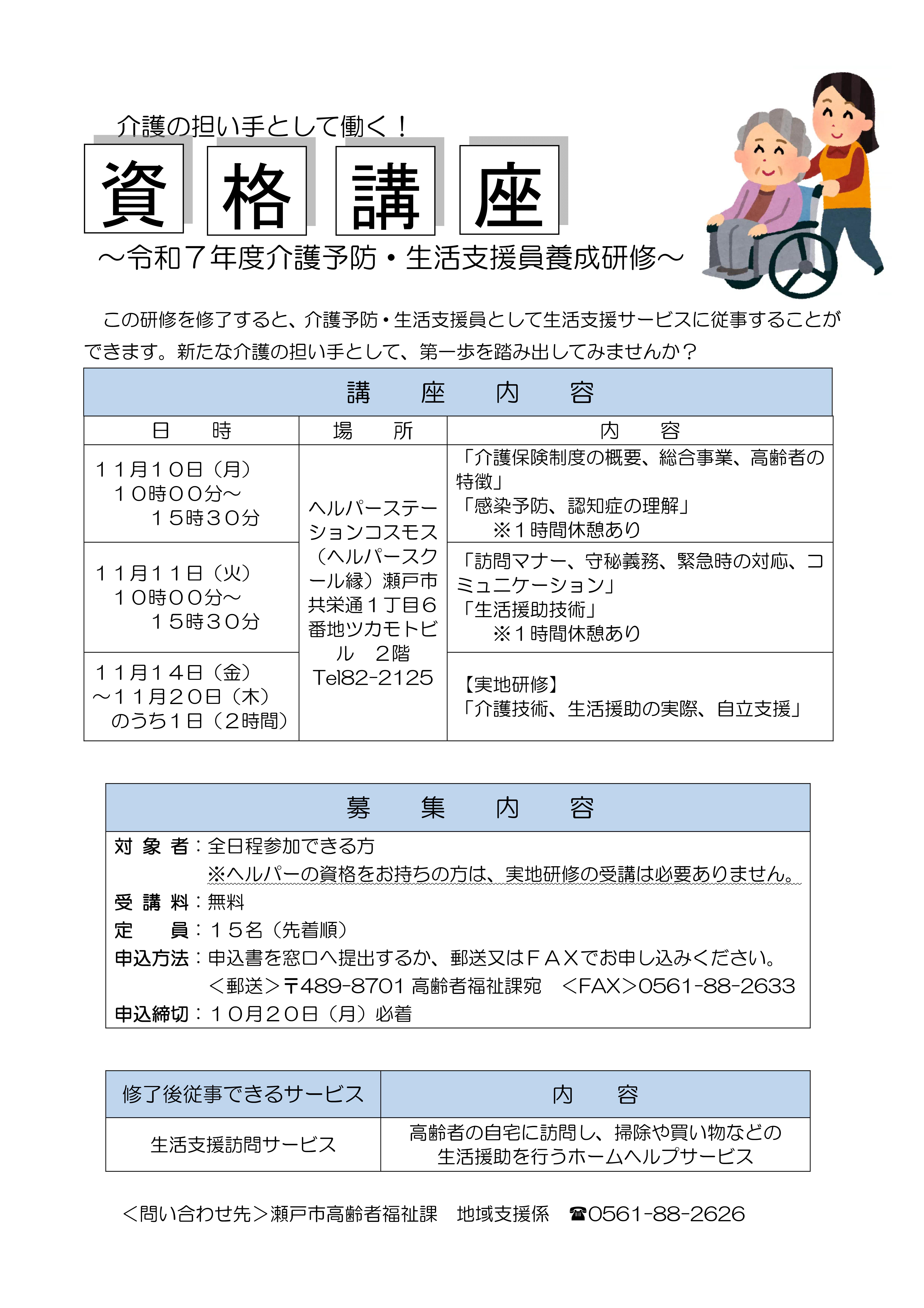 「介護予防・生活支援員」養成研修の受講者を募集します