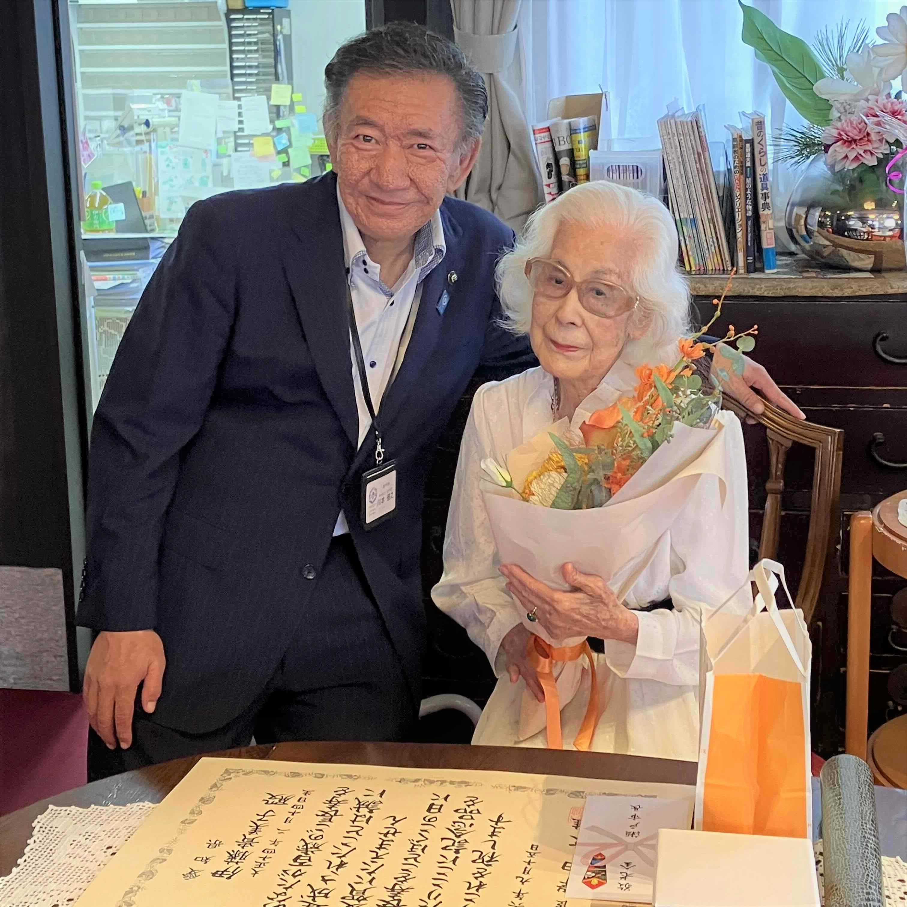 敬老の日の9月16日(月曜日)に、長寿のお祝いのため数え100歳の方を訪問しました。