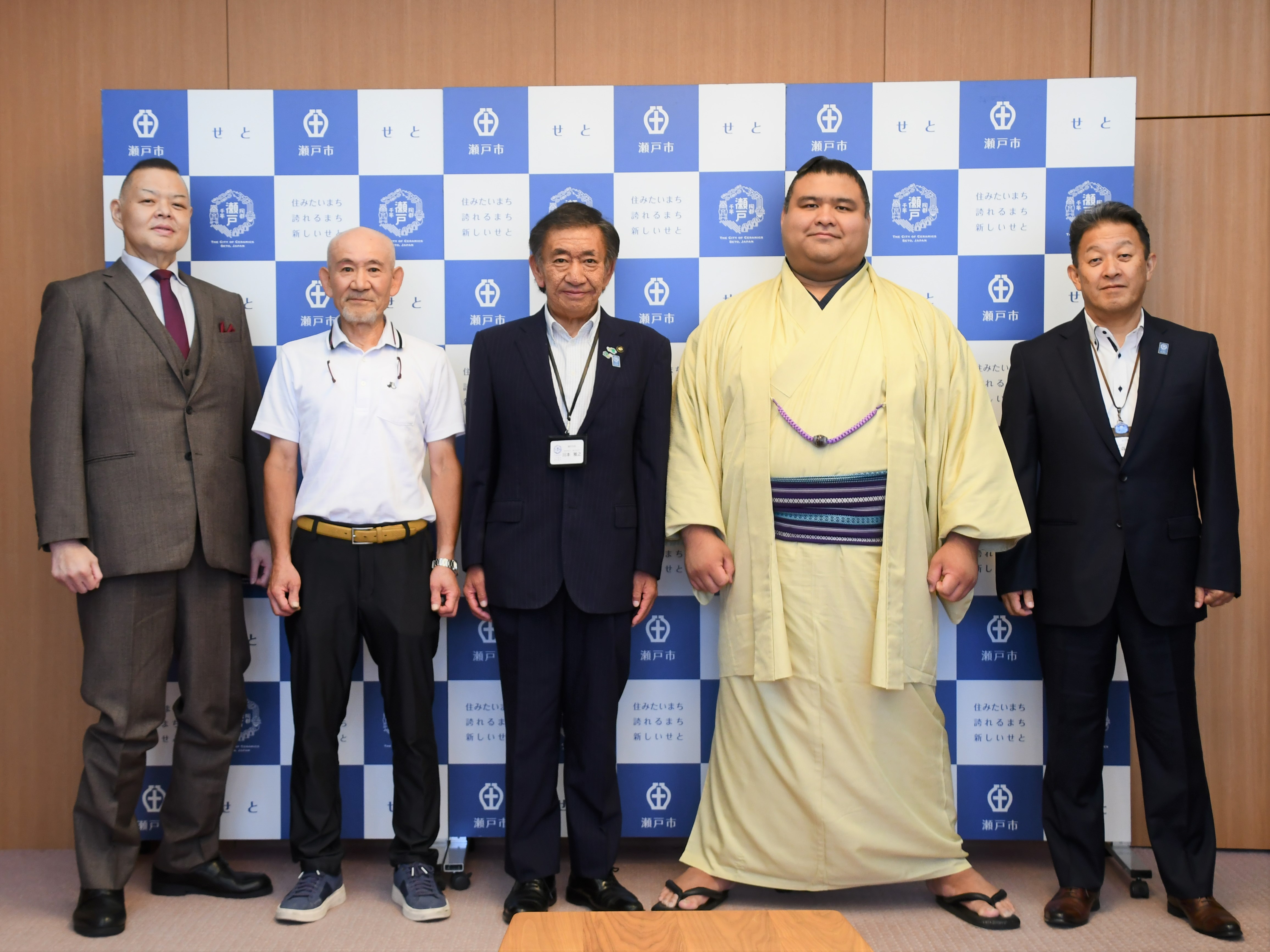 田子ノ浦親方と高安関が市長表敬に来てくださいました。部屋を水無瀬町に構え、IGアリーナのこけら落としとして行われる名古屋場所に向け、稽古に励まれます。また、保育園などを訪問したり、瀬戸警察の一日警察署長を務めていただくなど地域に出て触れ合っていただきました。瀬戸市から応援しています。